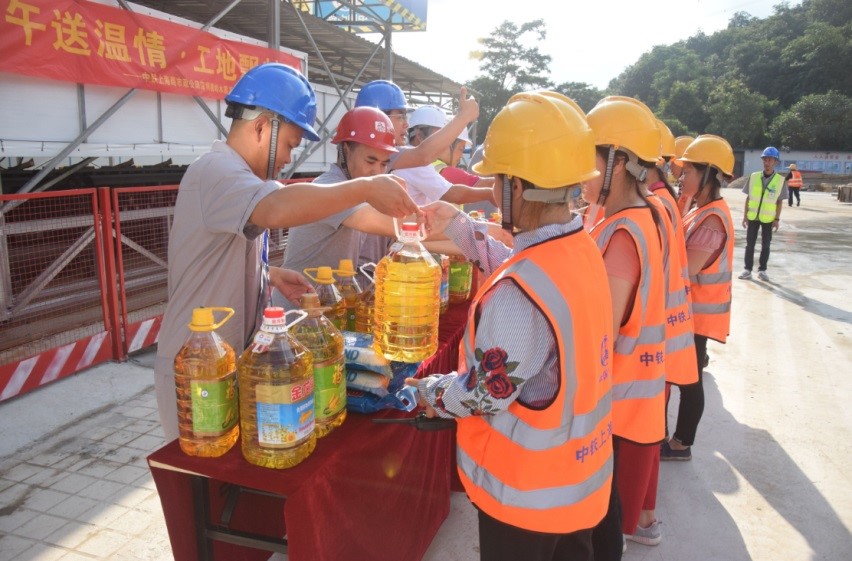 66日,成都軌道交通8號線6標項目部工會向奮戰在高溫下的一線員工和協作隊伍送去了濃濃的節日祝福。(王紅社)