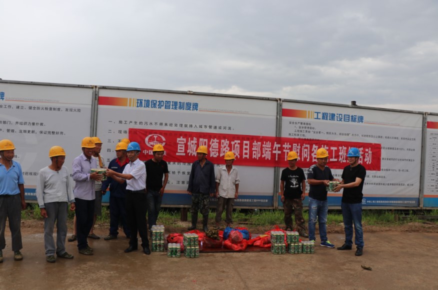 又訊,66日上午,宣城陽德路項目部開展“情系農民工、端午節慰問活動”,項目部領導來到施工現場為奮戰在一線的100多名農民工送去了粽子、豬肉、啤酒等慰問品,送去了項目的溫馨祝福,讓堅守在施工一線農民工兄弟真正感受到項目對他們的關愛之情和濃厚的節日氣氛。(唐順林)